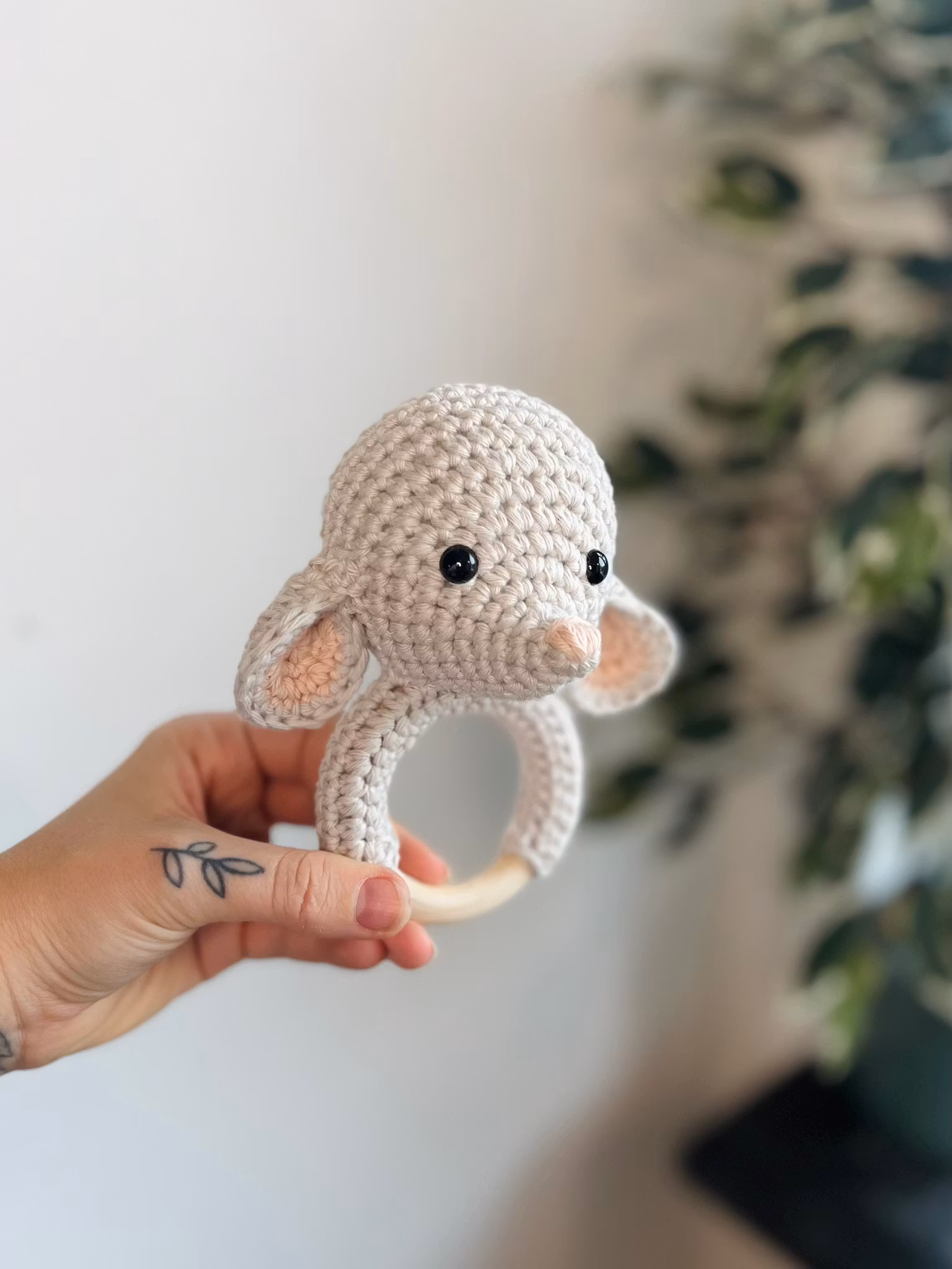Detta mönster innehåller beskrivning för att virka delen till träringen samt hur du monterar ihop det med ett huvud från valfritt Minikompis-mönster.